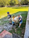 Le matin la classe de maternelle est partie à la découverte des animaux de la ferme à travers les 5 sens : On sent, on touche, on goûte, on écoute, on regarde
